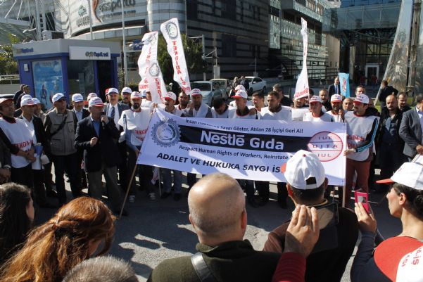Nestle’nin Bursa Karacabey’de kurulu fabrikasında çalışırken Hak-İş’e bağlı Öz Gıda-İş Sendikası’na üye olan işçiler işverenle imzalanan sözleşmeye itiraz ettikleri için 28 işçi önce izne gönderildi, ardında da işten çıkarıldı. İşten çıkarmalarda patron ve sendika yönetiminin işbirliği yapması üzerine işçiler, Öz Gıda-İş Sendikası’ndan istifa etti.