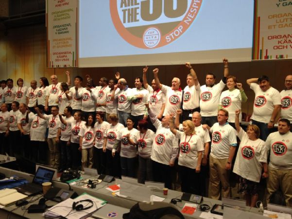 Türkiye’yi temsilen Tekgıda-İş Sendikası Başkanı Mustafa Türkel’in İcra Kurulu’na seçildiği genel kurulda, dün ayrıca Tekel Direnişi sırasında sağladığı uluslararası destekten ötürü IUF Genel SEKRETERİ Ron Oswald’a teşekkür amacıyla hazırlanan Tekel dayanışma heykelciği de takdim edildi.