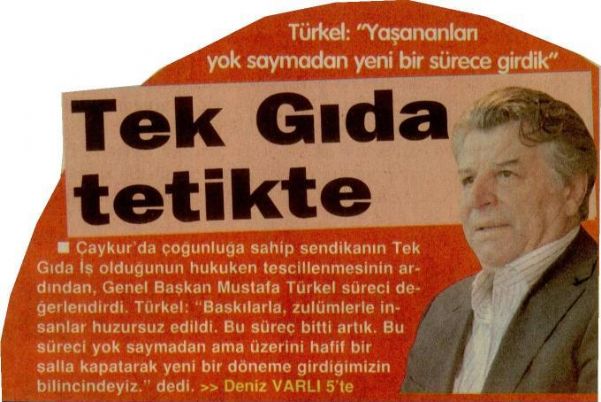Çaykur´da çoğunluğa sahip sendikanın Tekgıda İş olduğunun hukuken tescillenmesinin ardından, Genel Başkan Mustafa Türkel süreci değerlendirdi. Türkel: Baskılarla, zulümlerle insanlar huzursuz edildi. Bu süreç bitti artık. Bu süreci yok saymadan ama üzerini hafif bir salla kapatarak yeni bir döneme girdiğimizin bilincindeyiz. dedi.