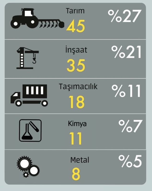 Ölen 164 işçinin yalnızca 7’si sendikalıydı, bu emekçiler tarım, madencilik, inşaat ve belediye işkollarında çalışıyordu.