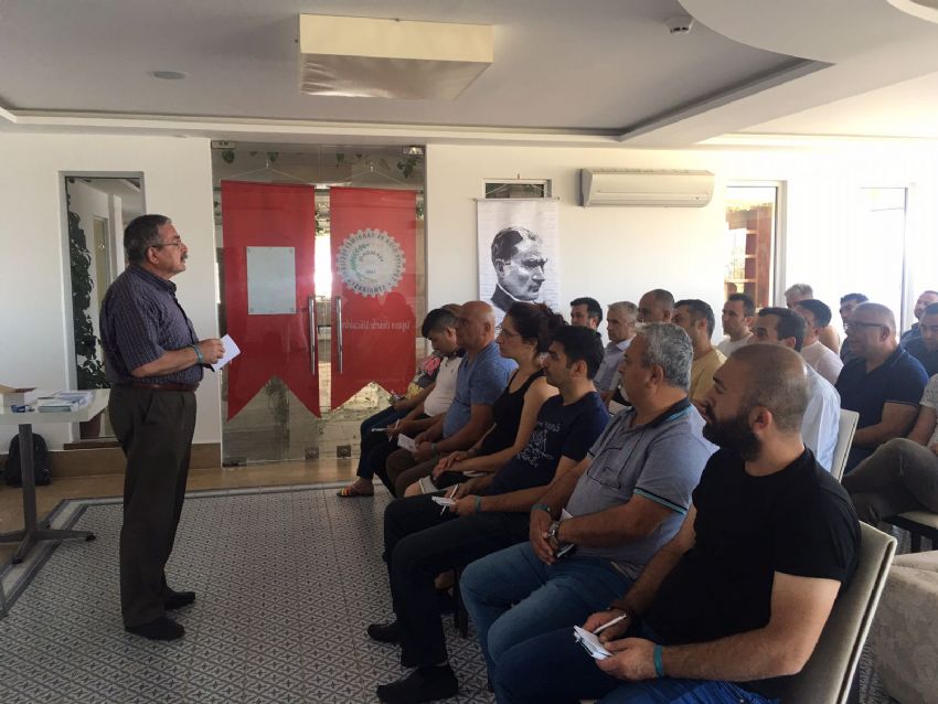 Temsilci eğitimimiz Seferihisar’da bulunan mülkiyeti sendikamıza ait olan Lebedos Peincess Otel’de başladı. 6-21 Eylül 2017 tarihleri arasında 3 grup olarak gerçekleştirilecek eğitimlerin ilk grubunun eğitimi tamamlandı. EĞİTİMlerimizde Çalışma Hayatı ve Endüstriyel İlişkiler konusunda ODTÜ Öğretim Görevlisi Yıldırım Koç, Etkili İletişim konusunda Okan Üniversitesi EĞİTİM Fakültesi Dekanı Prof. Dr. Ali İlker Gümüşeli temsilcilerimizle biraraya geldi.