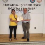 01-05 Haziran 2024 tarihleri arasında 4. gruptaki temsilcilerimiz de sertifikalarını aldılar. Temsilcilerimiz, Sendikamızın Politikaları ve Temsilcilerin Görev ve Yetkileri konularında, Genel Başkanımız Mustafa Türkel tarafından bilgilendirdiler. Temsilcilerimizle, Çalışma Hayatı Yasaları, Ekonomik Gelişmeler ve Endüstriyel İlişkiler konularında, ODTÜ Öğretim Görevlisi Yıldırım Koç ile Sosyal Medya konusunda da, Sendikamızın Bilgi İşlem Sorumlusu Evren Talkım bir araya geldi. Eğitimler Genel Eğitim Sekreterimiz Engin Öz koordinatörlüğünde yürütüldü.
