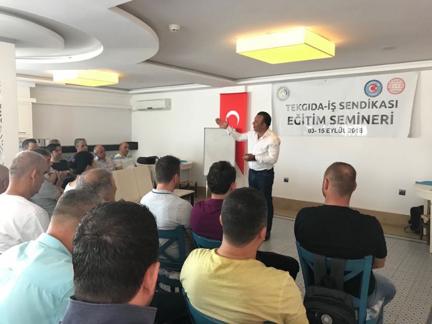 Temsilci eğitimlerimizde bir aşamayı daha geride bıraktık. Sendikamızın 2018 yılı Temsilci EĞİTİMlerini tamamladık. Seferihisar Lebedoss Princess Otel’de, 03-15 Eylül 2018 tarihleri arasında 3 grup olarak gerçekleştirdiğimiz eğitimlerimizde, Endüstriyel İlişkiler ve Etkili İletişim konuları işlendi. Endüstriyel İlişkiler eğitimini ODTÜ Öğretim Görevlisi Yıldırım Koç, Etkili İletişim eğitimini Okan Üniversitesi EĞİTİM Fakültesi Dekanı Prof. Dr. Ali İlker Gümüşeli verdi. EĞİTİMlerin açılışını Sendikamız Genel EĞİTİM SEKRETERİ Kemal Köse yaptı. Bu dönemki eğitim seminerlerimize de temsilcilerimizin aileleri katıldı. Aileler tesisleri sendikamıza ait olan otelde eğitim süreci boyunca tatil yapma fırsatı buldular. EĞİTİMlerimiz işyeri üye eğitimleriyle kesintisiz devam edecek.