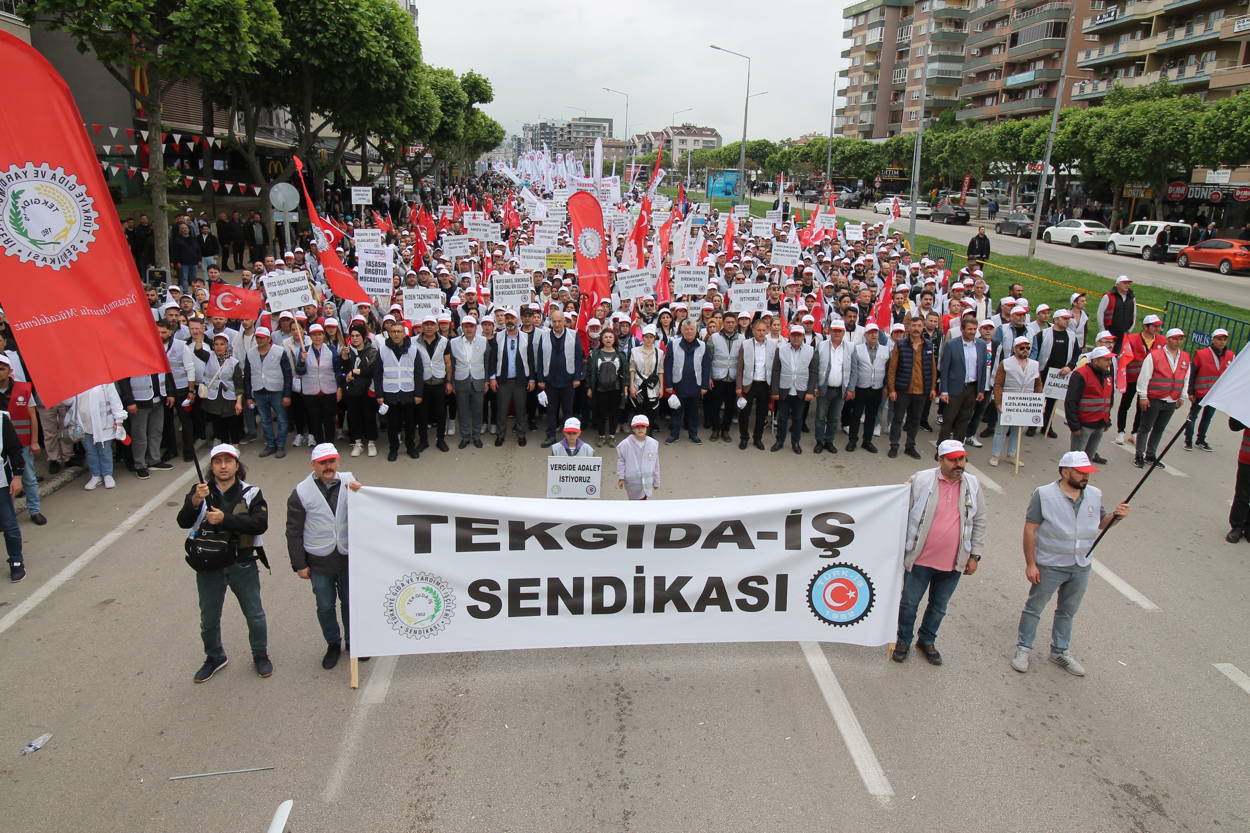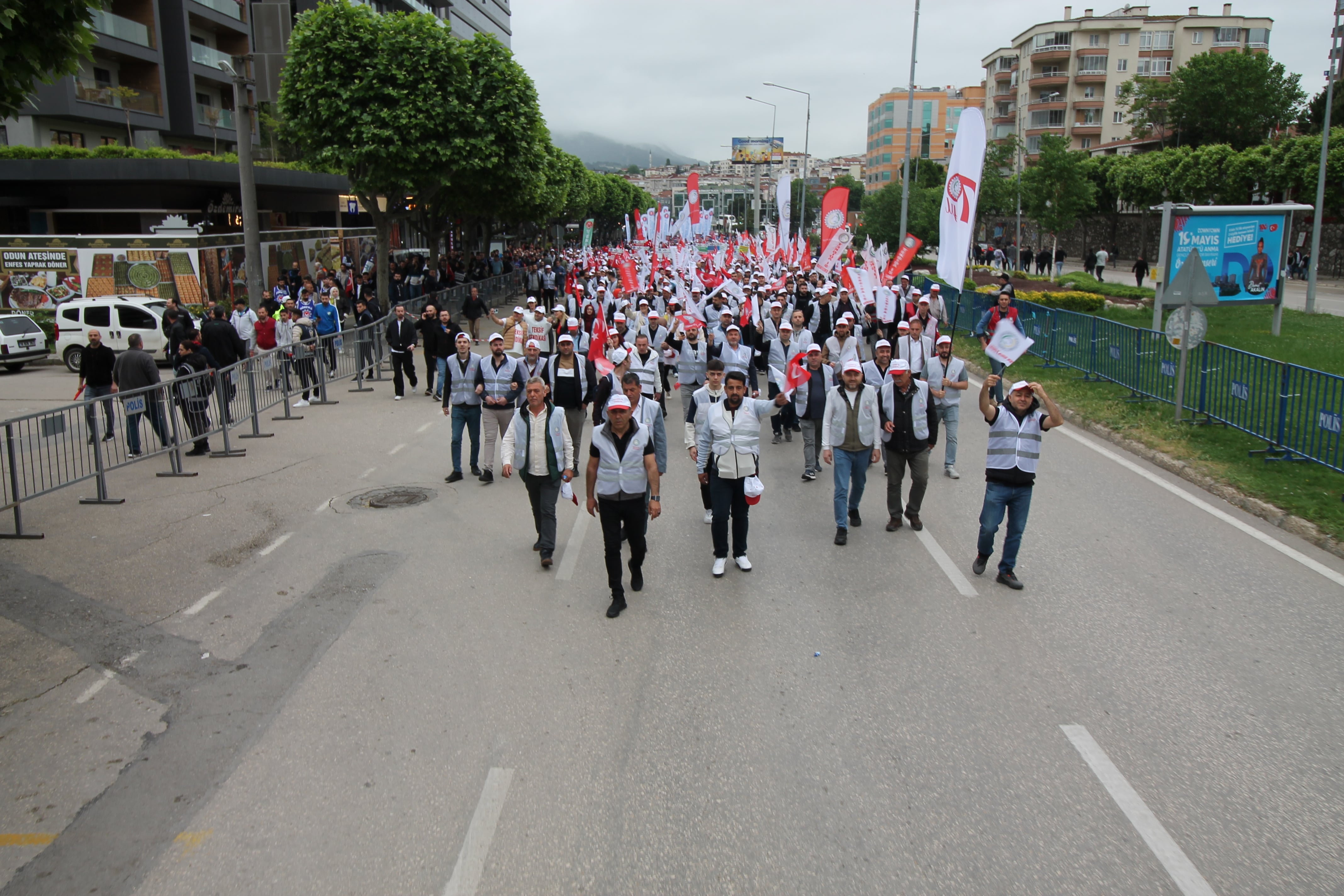 Sendikamız bu yıl 1 Mayıs Emek ve Dayanışma Günü etkinliklerini, konfederasyonumuz Türk-İş Başkanlar Kurulu’nun almış olduğu karar çerçevesinde Bursa, Mustafakemalpaşa, Karacabey şubelerimiz ile birlikte Kocaeli, Eskişehir, Gebze, Tuzla ve İstanbul Avrupa Yakası şubelerimize bağlı işyerlerinden üyelerimizin yoğun katılımı ile büyük bir coşkuyla Bursa’da kutladı.