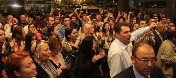 AKP’nin grev yasağı kararını meclis gündemine getirdiği dakikalarda havayolu işçileri uçuşları kilitleyen ve iki yüzün üzerinde seferi iptal ettiren büyük bir eyleme başladı. Grev hakkına sahip çıkan işçiler havaalanın asli unsuru olduklarını ve haklarını için mücadele edeceklerini gösterdiler.