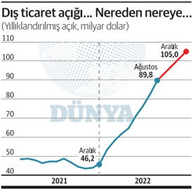 2021’de 46 milyar dolar olan dış ticaret açığı bu yıl 105 milyara gidiyor. O düzeyde kalınabilir mi, o da meçhul.