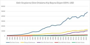 Sonuç olarak, dünyada gelir düzeyleri arasındaki farkın giderek arttığı görülüyor. Türkiye’nin üst gelir grubuna mensup ülkelerle arasındaki farkın kapanabilmesi için istikrarlı bir büyüme sağlaması gerektiği ortaya çıkıyor. Üst gelir grubundaki ülkeler her yıl gelirlerini artırırken, Türkiye’nin bu büyümeyi yakalaması ve gelir farkını kapatabilmesi için daha yüksek performans sergilemesi şart. Eğer bu sağlanamazsa, ekonomik uçurum daha da açılacak.