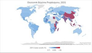 Harvard Growth Lab’in 2031 yılına kadar olan ekonomik büyüme tahminlerine göre, Çin, Vietnam, Endonezya, Hindistan ve bazı Afrika ülkeleri önemli büyüme oranları yakalayacak. Gelişmiş ekonomilerin büyüme oranları ise daha yavaş kalacak. Türkiye’nin yüzde 4,34’lük büyüme tahmini, 133 ülke arasında 20. sırada yer almasını sağlayacak. Ancak, bu büyüme oranı Türkiye’nin gelir farkını kapatabilmesi için yeterli olmayacak gibi görünüyor.