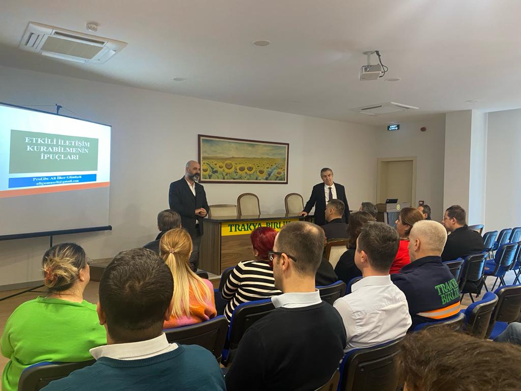 “Etkili İletişim Kurabilmenin İpuçları” konulu eğitimi, Okan Üniversitesi Öğretim Üyesi Prof. Dr. Ali İlker Gümüşeli verdi. Genel Eğitim Sekreterimiz Engin Öz ve Mustafakemalpaşa Şube Başkanımız Ömürlü Ülüfer de sendikal konularda üyelerimizi bilgilendirdiler. Trakya Birlik Yönetimine sendikamızla eğitim için sergiledikleri işbirliğine teşekkür ederiz.
