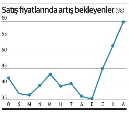 Eylül ayında firmaların yüzde 35.3’ü gelecek üç ayda satış fiyatlarını artıracağını söylerken, aralık ayında bu oran yüzde 59.9’a tırmandı. Üç ayda tam 24.6 puanlık artış var.