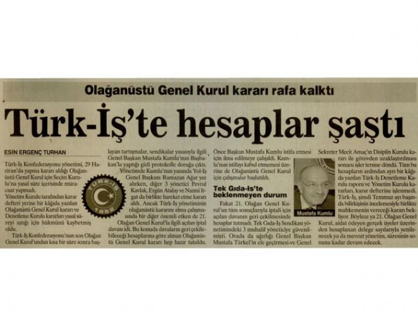 Fakat 21. Olağan Genel Kurul’un tüm sonuçlarıyla iptali için açılan davanın geri çekilmesinde hesaplar tutmadı. Tekgıda-İş Sendikası yönetimindeki 3 muhalif yöneticiye güvenilmişti. Orada da ağırlığı Genel Başkan Mustafa Türkel’in ele geçirmesi ve Genel Sekreter Mecit Amaç’ın Disiplin Kurulu kararı ile görevden uzaklaştırılması sonucu işler tersine döndü. Tüm bu hesapların ardından ayrı bir kâğıda yazılan Türk-İş Denetleme Kurulu raporu ve Yönetim Kurulu kararları, karar defterine işlenmedi. Türk-İş, şimdi Temmuz ayı başında bilirkişinin incelemesiyle birlikte mahkemenin vereceği kararı bekliyor. Böylece ya 21. Olağan Genel Kurul, aidat ödeyen gerçek üyeler üzerinden hesaplanan delege sayılarıyla yenilenecek ya da mevcut yönetim, süresinin sonuna kadar devam edecek.