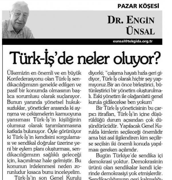 Demokrasimizin en önemli aktörü olan işçi sendikalan kamu oyunda karalanmayı hak etmemelidir. Bunun için Türk-İş ve üyesi sendikalar kendilerini sorgulamalıdır. Demokrasinin sonlandırılmak istendiği bir dönemde işçi sendikaları demokrasiyi savunmak ve onu ayakta tutmak zorundadır. Bunun için de önce kendi sorumluluklarının ayırdına vararak bunun gereğini yapmalıdırlar.