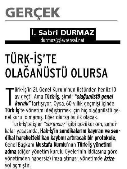 TÜRK-iŞ’TE OLAĞANÜSTÜ OLURSA