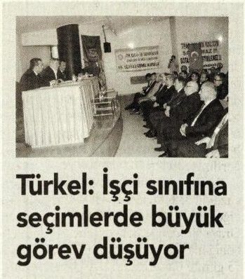 TÜRKEL: İŞÇİ SINIFINA SEÇİMLERDE BÜYÜK GÖREV DÜŞÜYOR