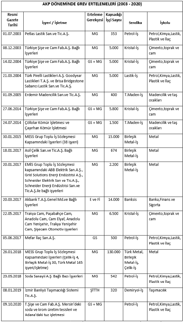 TÜRKİYE’DE 2003-2020 DÖNEMİNDE GREV ERTELEMELERİ