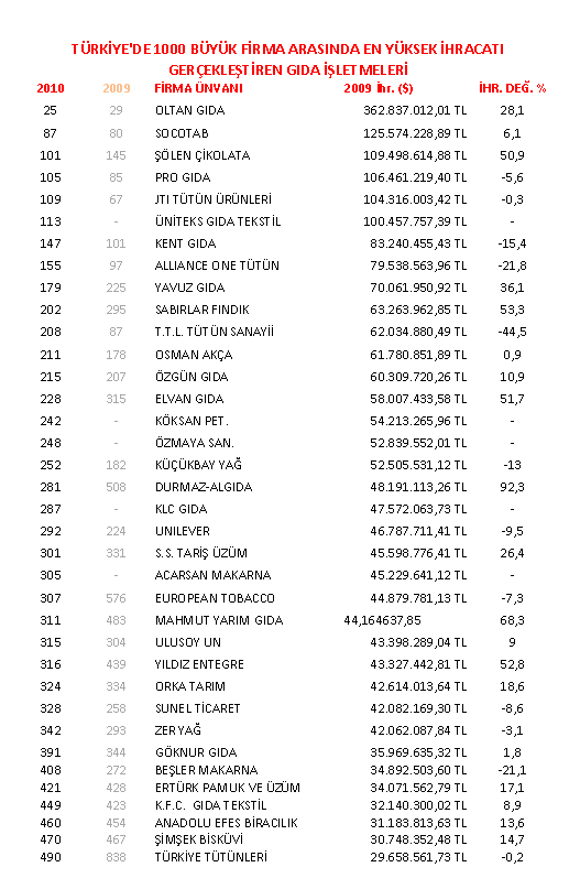 TÜRKİYE’DE İHRACAT YAPAN EN BÜYÜK GIDA İŞLETMELERİ