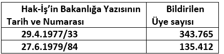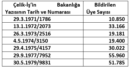 Bu yıllarda sendikalar her yılın başında Çalışma Bakanlığı’na gönderdikleri bir sayfalık bir yazıda, hiçbir belgeyle desteklemeye gerek kalmadan, üye sayılarını bildiriyorlardı. Bakanlık da bu bildirimleri toplayarak Türkiye’de sendikaların üye sayısına ilişkin verileri açıklıyordu.
