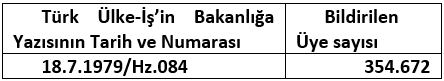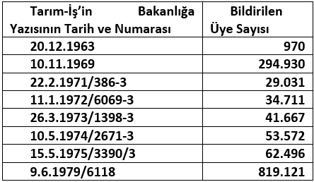 Tarım-İş’in 819.121 üye iddiasında bulunduğu yazının altında Genel Başkan Zeynel Irmak ve Genel Teşkilatlanma Sekreteri Selahattin Gezer’in imzaları bulunuyordu. 1984 Ocak istatistiklerinde Tarım-İş’in üye sayısı 33.558 olarak gözüküyordu.