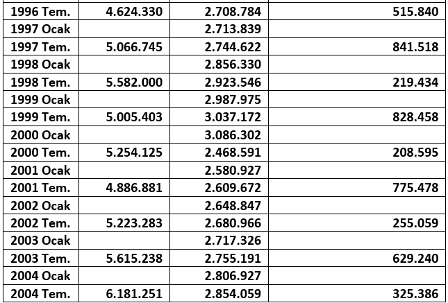 1950-1962 sigortalı işçi sayıları : Doç.Dr.Sait Dilik, Türkiye’de Sosyal Sigortalar, İktisadi Açıdan Bir Tahlil Denemesi, Banka ve Ticaret Hukuku Araştırma Enstitüsü Yay.No.99, Ankara, 1972, s.78