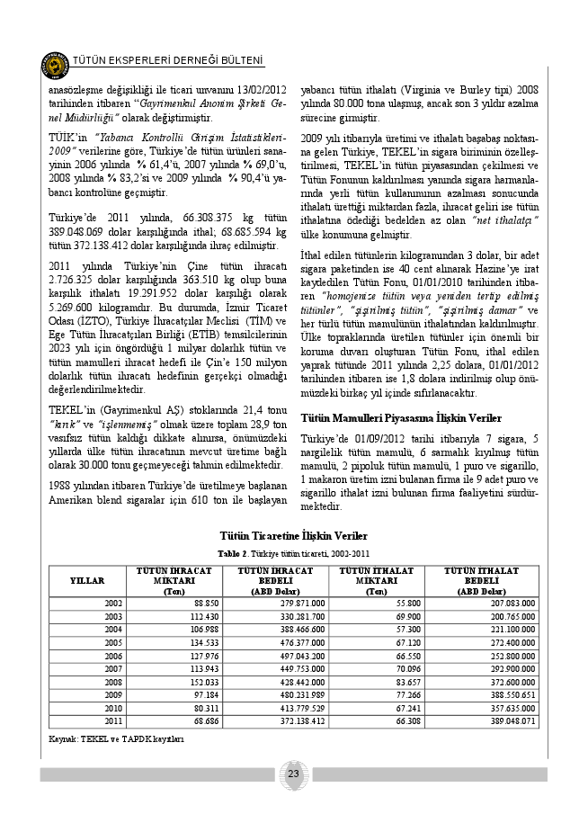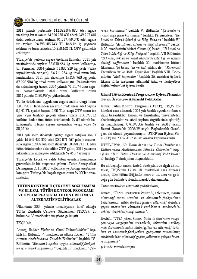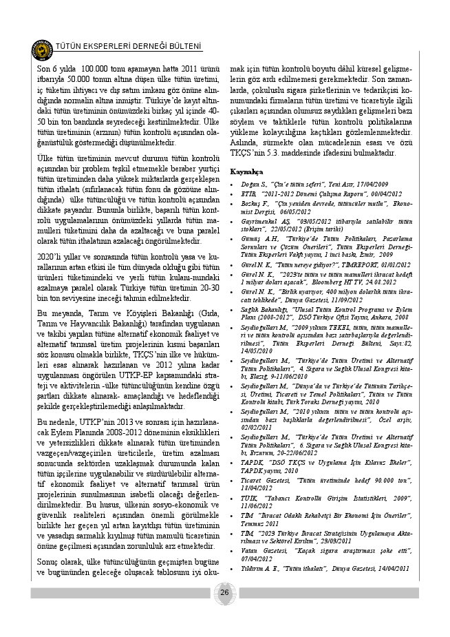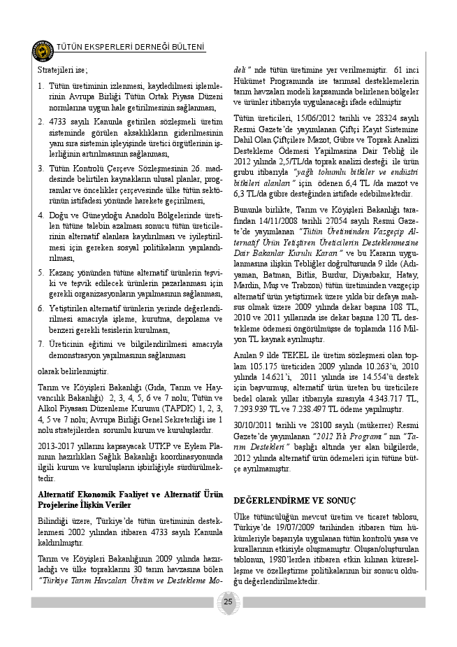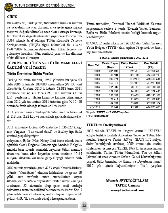 TÜRKİYE’DE TÜTÜNCÜLÜĞÜN MEVCUT DURUMU VE GELECEĞİ ÜZERİNE DEĞERLENDİRMELER