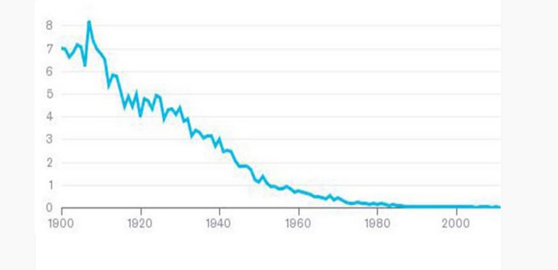 İşte yüzyıllık süreçte çıkarılan bir milyon ton kömür başına hayatını kaybeden Amerikalı maden işçisini gösteren grafik: