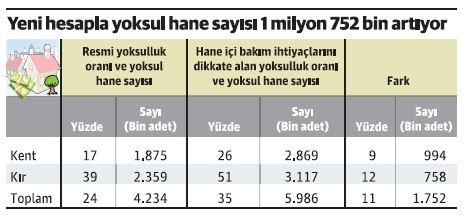 Ankara Üniversitesi SBF Öğretim Üyesi Yrd. Doç. Dr. Emel Memiş’in çalışmasında, Türkiye’de zaman yoksullarının da dahil olmasıyla 1 milyon 752 bin hanenin daha yoksul sayılması gerektiği belirlendi. Sadece gelir-gider yöntemiyle yapılan TÜİK yoksulluk verilerinde yoksul hanelerin sayısı 4 milyon 234 bin olarak görülüyor. Zaman yoksullarının dahil edilmesi halinde yoksul hane sayısı 5 milyon 986 bine çıkıyor. Yoksul sayısı da 7.6 milyon kişi artarak 29 milyona ulaşıyor.