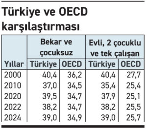 – OECD bu gruplandırmayı; evli, 2 çocuklu tek çalışan ile bekar, çocuksuz çalışan olarak yapıyor.