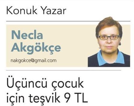 Yok, Türkiye nüfusu azalıyor, yok kadınların üç çocuk doğurması lazım, üç çocuk doğurana şu kadar para vereceğiz, şu kadar teşvik edeceğiz, demişlerdi ya … İşte iş Sağlığı Güvenliği ile ilgili 6 Nisan’daki Kanun’da üçüncü çocuğu teşvik, denilen şeyin ne olduğunu anlatmışlar, neymiş; üçüncü çocuk için yüzde 5 olan asgari geçim indirimi yüzde 10’a çıkarılmış.