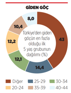 Umudunu yitiren gençler yurtdışına göç ediyor. Türkiye İstatistik Kurumu’nun (TUİK) 2024 yılına ilişkin ‘‘Uluslararası göç istatistikleri’’ne göre, geçen yıl Türkiye’ye 314 bin 588; Türkiye’den ise 424 bin 345 kişi göç etti. Türkiye’den en fazla göç edenler 25-29 yaş grubundakiler olması dikkat çekti.