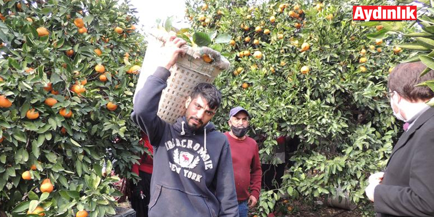 Narenciye işçilerini ziyaret ettik. İşçiler hummalı çalışma içindeler. Ağaç dallarından meyveler toplanıyor, genç işçiler toplananları küfelerle taşıyor, kadınlar özenle kasalama işlemi yapıyor ve narenciyeler kamyonlara yükleniyor. İşçilerle sohbetimizde ‘bir dokunduk, bin ah işittik’. İşçilerin sigortası yok, iş güvenliği yok, can güvenliği yok… Sadece günlük çalıştıklarının karşılığı ücret alıyorlar. Her gün iş de yok!