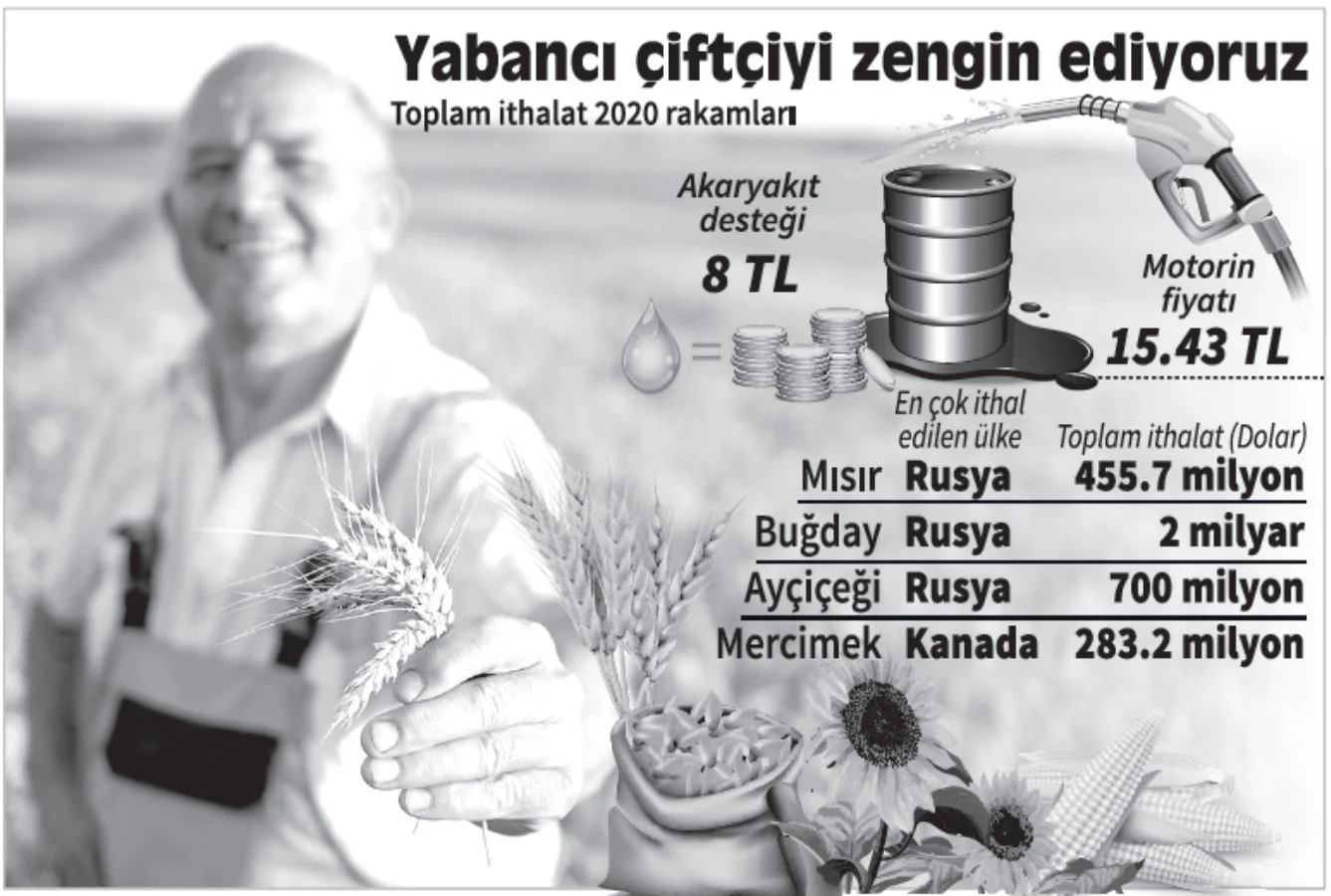 Tarım uzmanı Ali Ekber Yıldırım ise Türkiye’de çiftçiye 23 milyar TL destek verilirken sadece hububat ithalatı için 50 milyar TL harcandığını belirterek “Yaşanan ekonomik krizden çıkışın tek yolu tarımdır” dedi. TMMOB Ziraat Mühendisleri Odası Yönetim Kurulu Başkanı Baki Remzi Suiçmez de bu zamlarla üretimin düşeceğini belirtti. Özellikle elektrik zamlarından sonra çiftçiye verilen desteklerin boşa düştüğünü söyleyen Suiçmez, “Bakan sadece hububat üreticilerine mazot ve gübre için 50 TL vereceğini söylüyor ama birincisi bu iki kalem bütün üreticilerin ana kalemidir; neden diğerlerine yok? İkincisi de son 80 kuruşluk zam bile bu desteği silip götürdü” dedi.