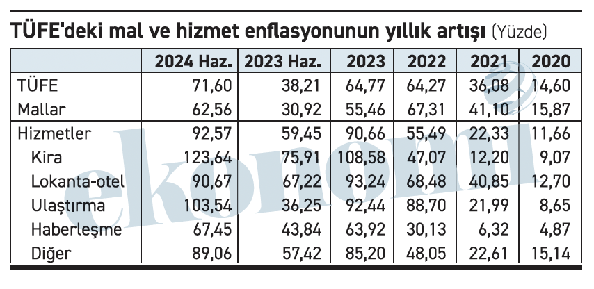 Hizmetlerdeki genel artış yüzde 12’den yüzde 93’e çıkmış.