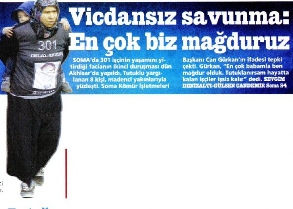 301 madencinin hayatını kaybettiği dava bir günlük aradan sonra tekrar görülmeye başlandı. Sanıklar gizlice duruşma salonuna getirildi. Sanık Can Gürkan, ´Bu davada en çok babamla ben mağdur olduk´ diyerek pişkin bir savunma yaptı.
