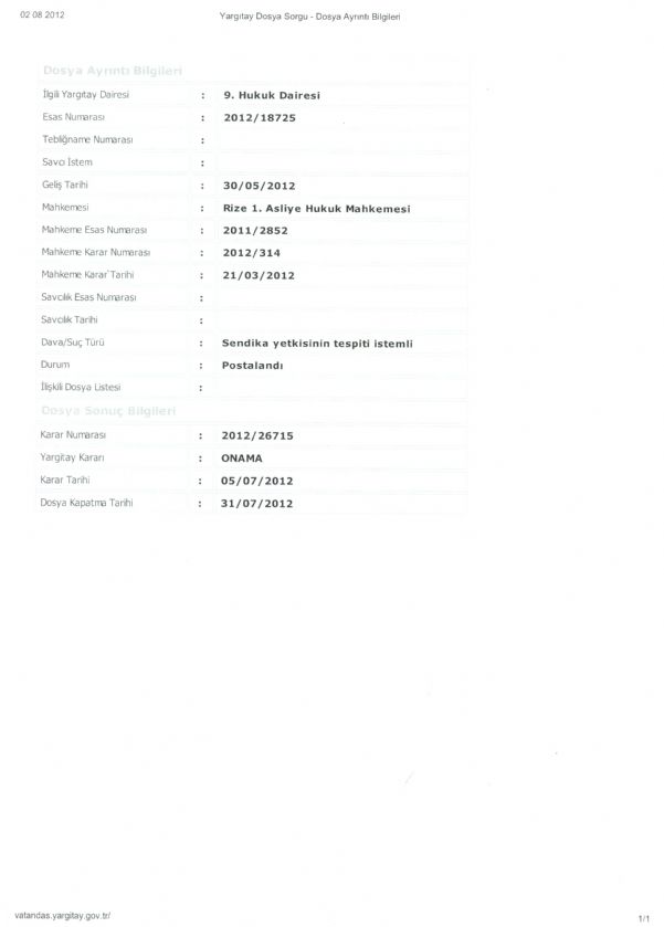 Rize 1. Asliye hukuk mahkemesi tarafından 2011/2852 sayılı Çaykur dosyası ile Tekgıda-İş Sendikası’nın yetkili olduğuna dair kararı Yargıtay tarafından onanarak kesinleşti. Bu kararla Öz Gıda-İş’in tezgâhı geri tepti. Yargıtay’ın gerekçeli karar Rize adliyesine ulaştıktan sonra Tekgıda-İş Sendikası Rize Bölge Başkanı Ziya Aksoy bir basın açıklaması yaptı. Aksoy’un bugüne kadar yaşanan süreci ve bugünden sonra izlenecek yol haritasının detayla hakkında kamuoyunu bilgilendireceği öğrenildi.