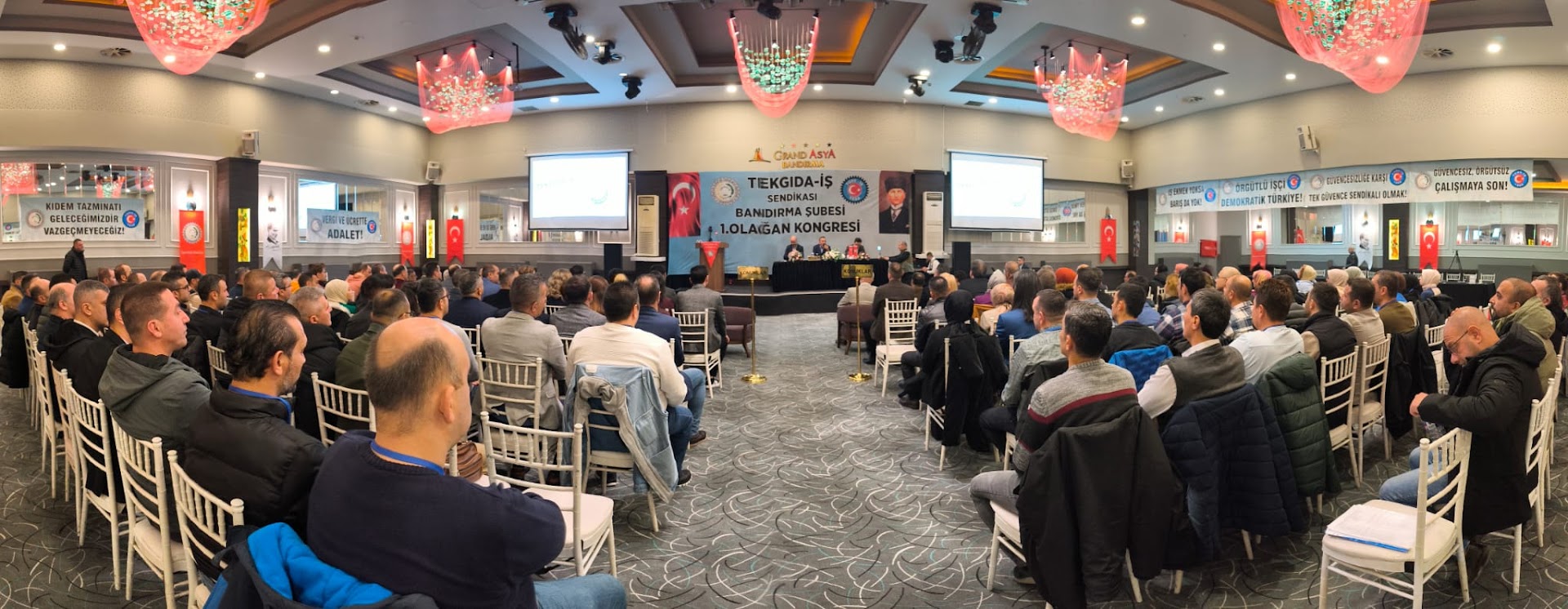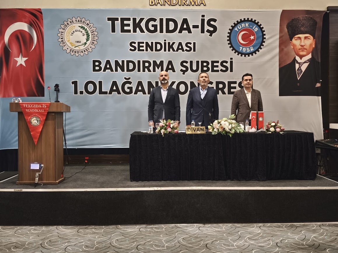 Delegelerin önergesi ile kongreyi yönetmek üzere Divan Kurulu oluşturuldu. Divan Kurulu Başkanlığına Genel Teşkilatlanma Sekreterimiz Kemal Köse, Divan Kurulu Üyeliklerine; Genel Mali Sekreterimiz Ali Bükülmez ve Genel Eğitim Sekreterimiz Engin Öz seçildi. Divan Kurulu yerini aldıktan sonra başta Mustafa Kemal Atatürk ve Kurtuluş Savaşı şehitleri olmak üzere iş kazalarında hayatını kaybeden işçilerin anısına bir dakikalık saygı duruşunda bulunuldu ve İstiklal Marşı okundu. Kongre, Bandırma Şube Başkan Adayı Şefik Kayhan tarafından yapılan açılış konuşması ile başladı. Daha sonra Genel Eğitim Sekreterimiz Engin Öz, kongremize katılan misafirleri tanıttı. Misafirlerin tanıtımı sonrasında konuşma yapan Genel Başkanımız Mustafa Türkel, ülkemizin içinde bulunduğu ekonomik durumu, bunun çalışanlara yansımalarını, toplu iş sözleşmelerine etkilerini, asgari ücret tartışmalarını değerlendirdi. Genel Başkanımız Mustafa Türkel’in konuşmasının satır başları şöyle: