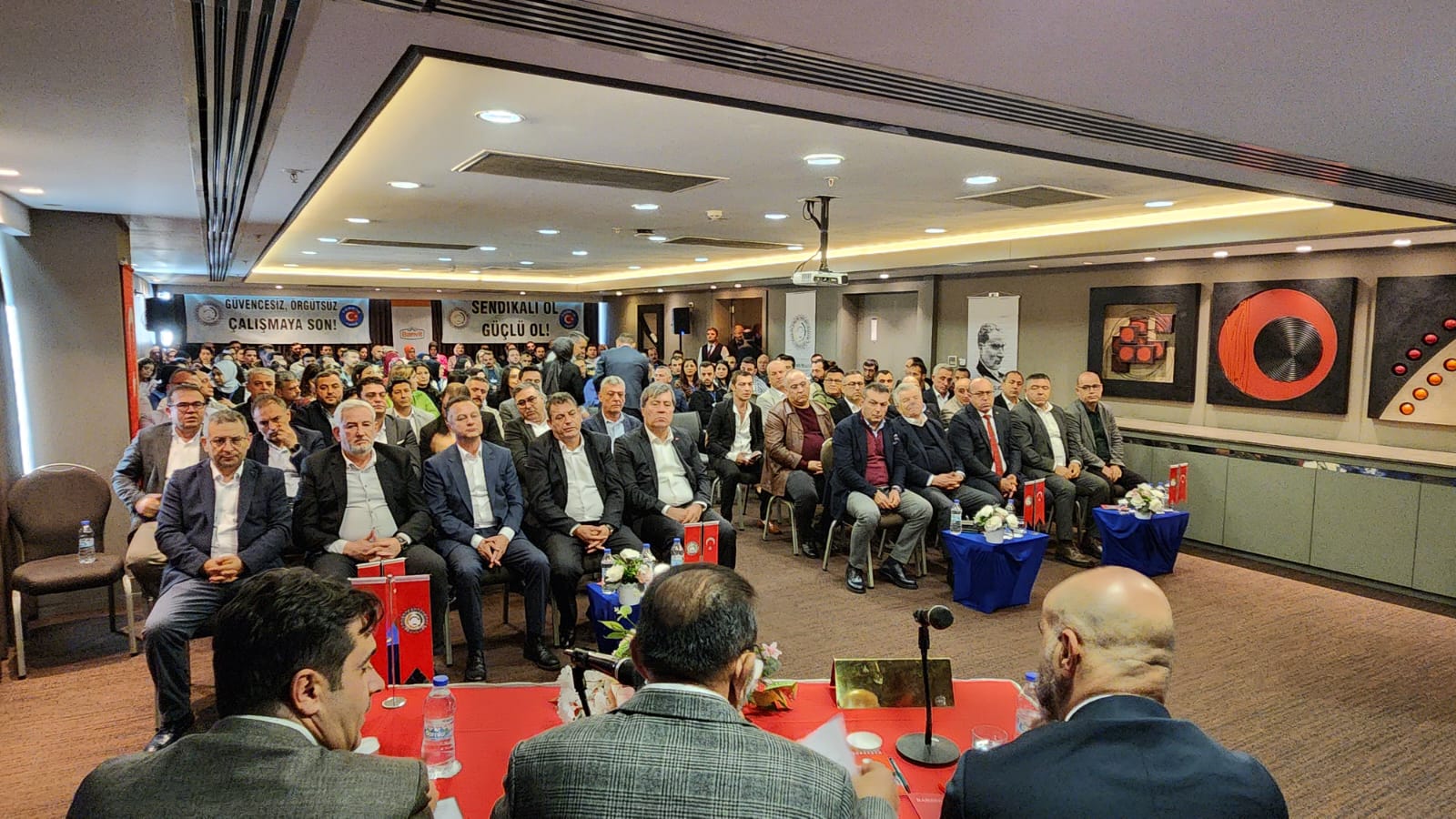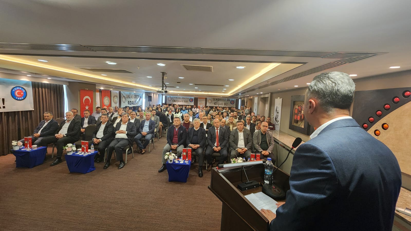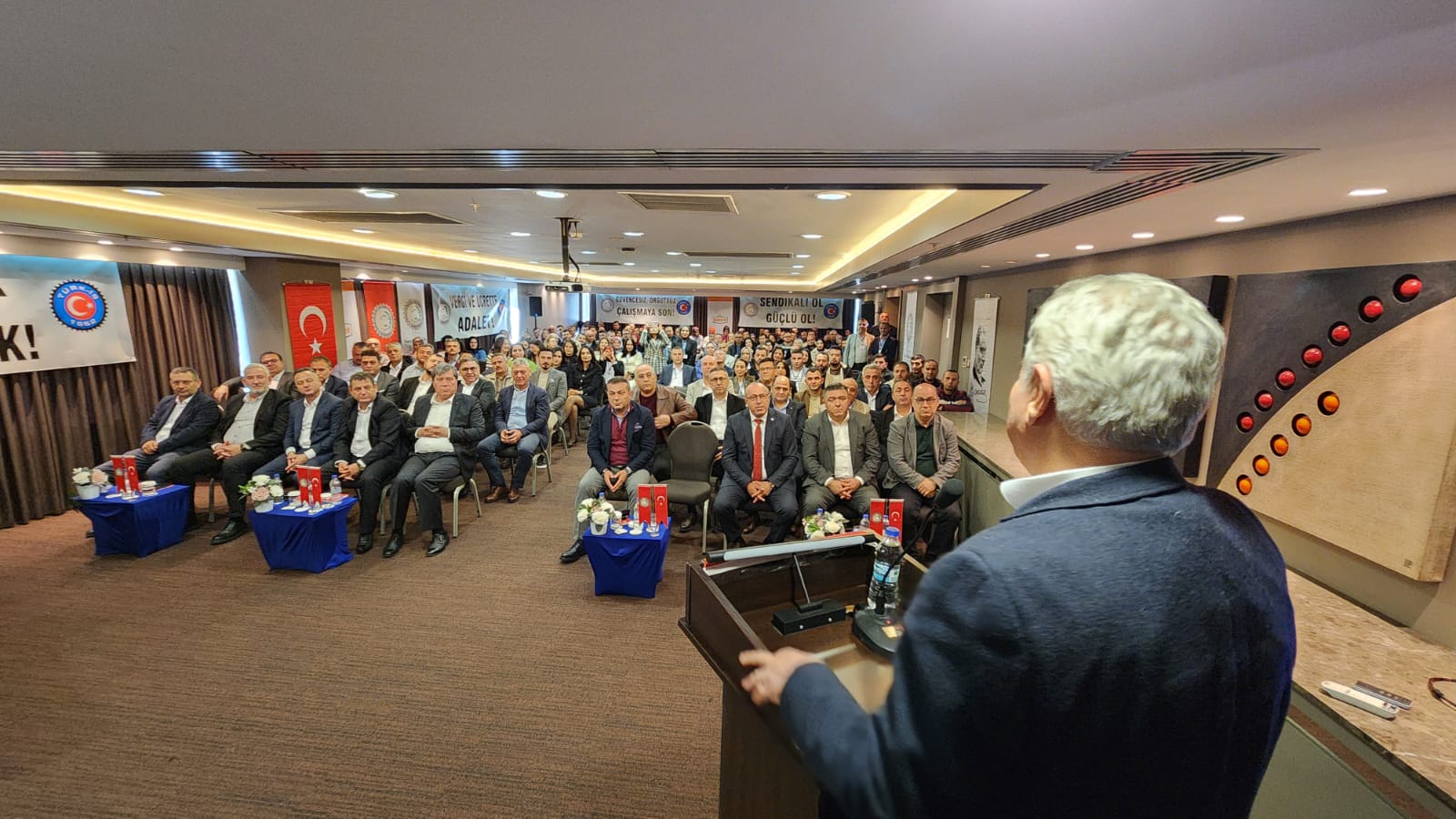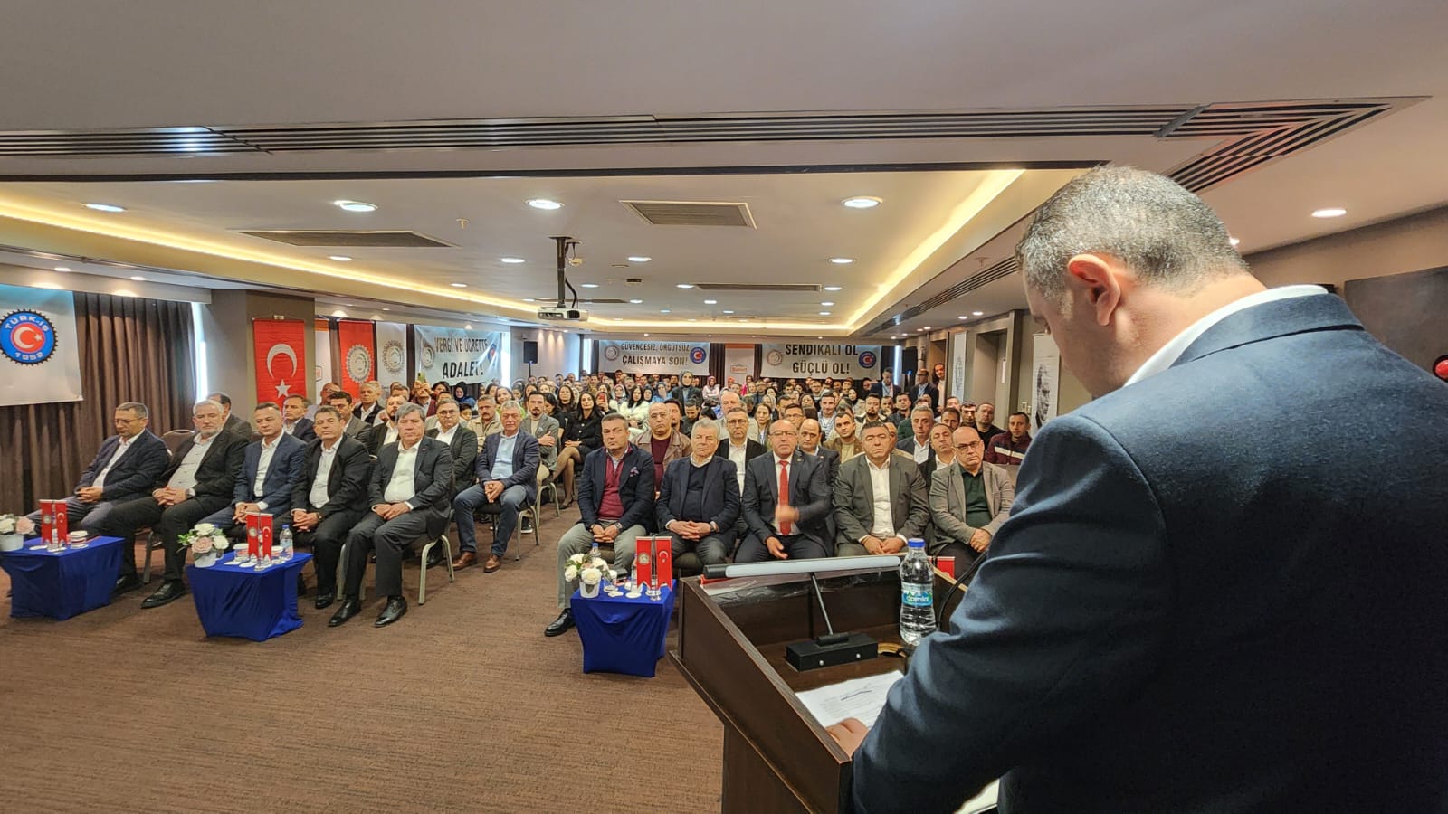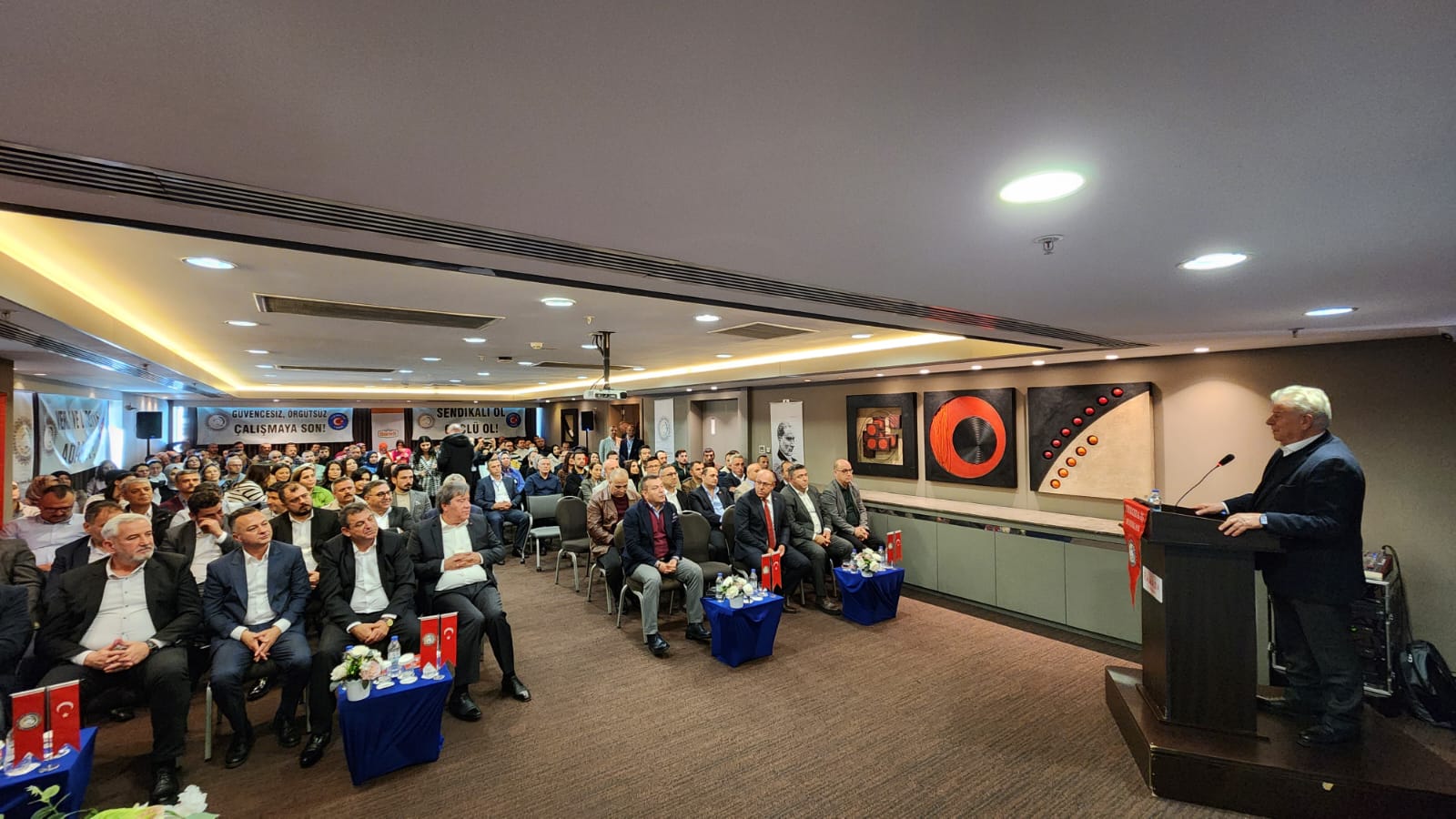 Konuşmaların ardından Genel Başkanımız Mustafa Türkel, bir konuşma yaptı. Genel Başkanımız Mustafa Türkel, sendikamızın kuruluşundan bugüne verdiği mücadeleleri, ülkemizin içinde bulunduğu ekonomik durumu, bunun çalışanlara yansımalarını, toplu iş sözleşmelerine etkilerini, asgari ücret tartışmalarını değerlendirdi. Genel Başkanımız Mustafa Türkel’in konuşmasının satır başları şöyle: