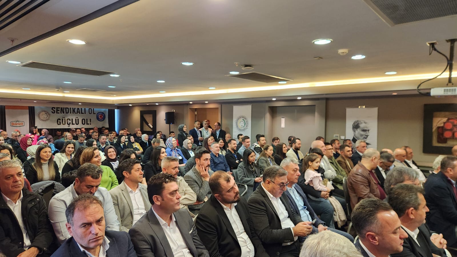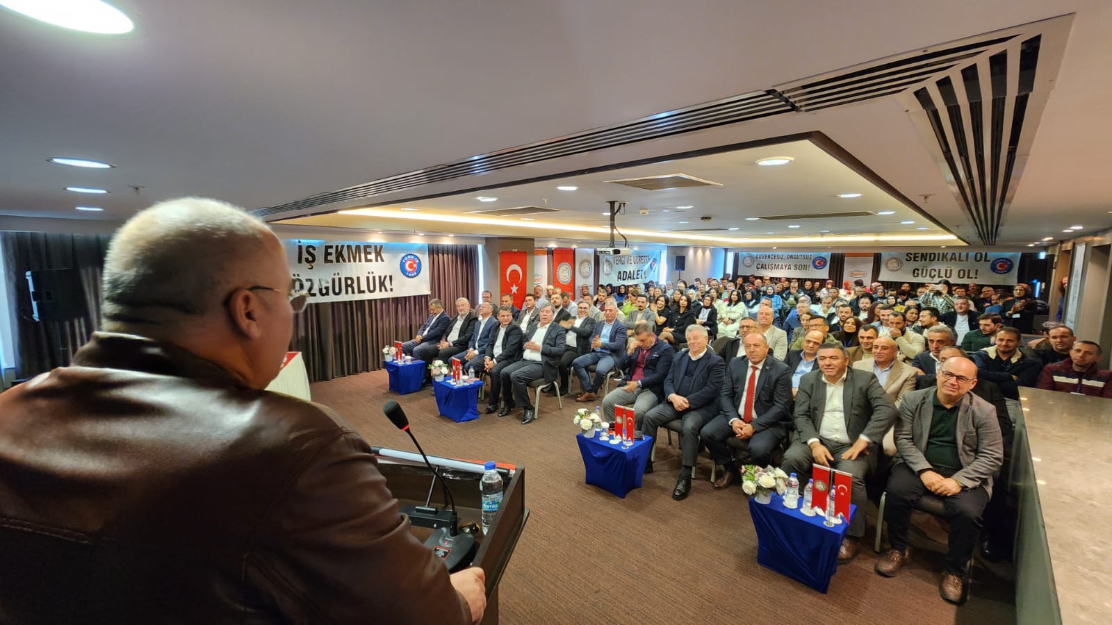 İzmir’de 14 Aralık Cumartesi günü yapılan Genel Başkanımız Mustafa Türkel, Genel Sekreterimiz İbrahim Ören, Genel Mali Sekreterimiz Ali Bükülmez, Genel Teşkilatlanma Sekreterimiz Kemal Köse ve Genel Eğitim Sekreterimiz Engin Öz katıldı. Kongreye şube başkanlarımızdan da Adana Şube Başkanı İbrahim Sani Gökmen, Ankara 1 Nolu Şube Başkanı Ali Solmaz, Ankara Fırınları Şube Başkanı Çelebi Karakökçek, Bursa Şube Başkanı Zeki Ertürk, Bursa Mustafakemalpaşa Şube Başkanı Ertan İkizler, Bursa Karacabey Şube Başkanı Ergün Çarıkçı, Eskişehir 1 Nolu Şube Başkanı Cengiz Çiçek, Eskişehir 2 Nolu Şube Başkanı Erdoğan Yörüksoy, Eskişehir 3 Nolu Şube Başkanı Yılmaz Taşpınar, İzmir 3 Nolu Şube Başkanı Latif Gökçay, İzmir 7 Nolu Şube Başkanı Ömer Atabey, İstanbul Avrupa Yakası Şube Başkanı Turgay Koç, İstanbul Anadolu Yakası Şube Başkanı Fikret Yılmaz, Kocaeli Şube Başkanı Ali Bostan, Samsun Şube Başkanı Ali Başkeser, Manisa Şube Başkanı Yavuz Uçkıran, Rize Dosan Şube Başkanı Mustafa Yüksel, Bandırma Şube Başkanı Şerif Kayhan, Balıkesir Şube Başkanı İbrahim Ökten ile Örgütlenme Uzmanımız Adem Çınkır katıldı.