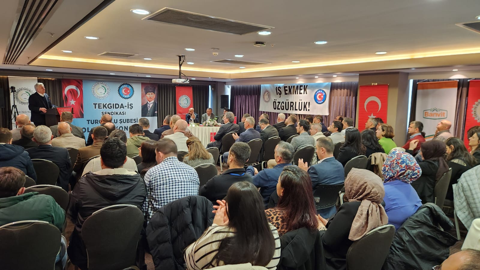 Tekgıda-İş Sendikası örgütlenmede bir marka haline gelmiştir. Bunu marka yapan, bu örgütün üyesi, temsilcisi, şube başkanı, şube yöneticisi, genel merkez yöneticisi, uzmanı, çaycısı dahil bu örgütü marka yapan, bu ekibin has damarlarındaki sınıf bilinci, emek bilincidir ve birbirimize olan inancımızdır. Bu inancı sağlayan, bu inanca katkı sunan herkese teşekkür ediyorum. Eğer sizin malınızın değeri ya da marka olarak kamuoyundaki ederi iyi değilse ne yaparsanız yapın, üye yapamazsınız. Gıda işkolunda bir tek biz yokuz. Bizimle birlikte Gıda-İş diye DİSK’e bağlı bir sendika, Şeker-İş diye bir sendika, Özgıda-İş Sendikası diye bir sendika daha var. Tekgıda-İş de bu işkolundaki dört sendikadan birisi. Sizler Tekgıda-İş Sendikası’na gelip bu çatı altında burayı tercih ettiğiniz gün, bu sendikanın adını, bu sendikaya olan inancınızı, sahadaki arkadaşlarımızın sizinle paylaştığı şeylere güvenerek geldiniz. Biz geldiğinizde güveninizi boşa çıkardık mı kardeşler? Başınızı öne eğdirdik mi? Eh şeref verdiniz o zaman. Hoş geldiniz, sefa geldiniz.