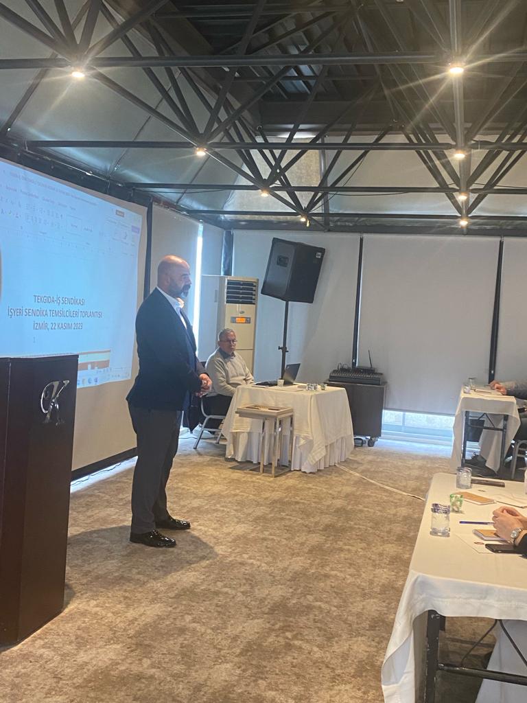 İzmir 3 Nolu, İzmir 7 Nolu ve Manisa Şubelerimizin son bir yılda atanan tüm temsilcileri eğitime katıldılar. Çalışma Hayatı yasaları, işyeri temsilcilerinin görev ve yetkileri konularında düzenlenen eğitimi ODTÜ Öğretim Görevlisi Yıldırım Koç verdi. Açılışta Genel Eğitim Sekreterimiz Engin Öz, Şube başkanlarımız Latif Gökçay, Ömer Atabey ve Yavuz Uçkıran da üyelerimize hitaben birer konuşma yaptılar.