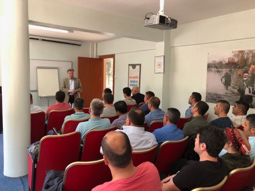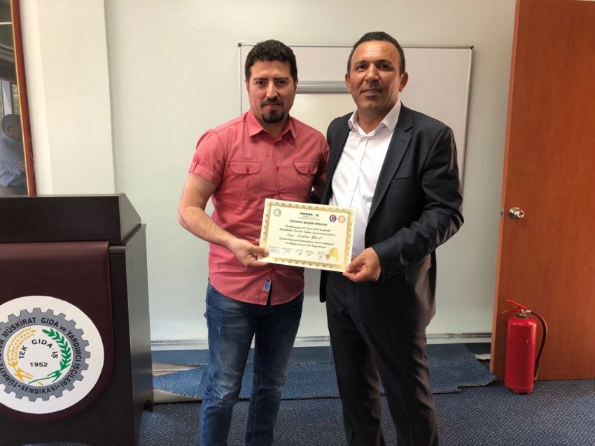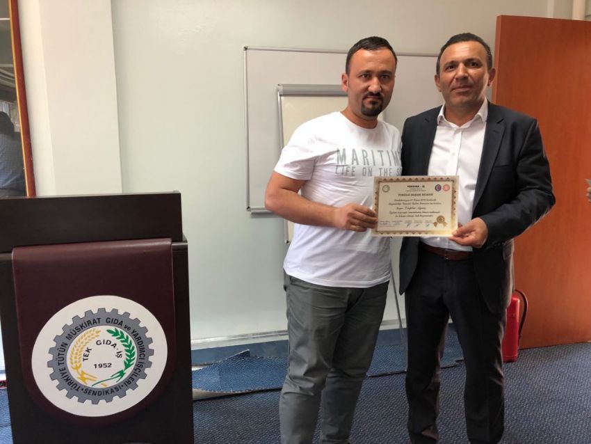 Yeni atanan temsilcilerimize sendikamız genel merkezinde yapılan eğitimle sertifikaları verildi. Türkiye sendikal tarihi ile temsilcilerin görev ve yetkileri konularında ODTÜ Öğretim Görevlisi Yıldırım Koç temsilcilerimize bilgi verdi. EĞİTİM seminerinin açılışını Genel EĞİTİM SEKRETERİmiz Kemal Köse yaptı. Seminerin kapanış konuşmasını Genel Başkanımız Mustafa Türkel yaptı. Genel Başkanımız, sendikamız için temsilcilerin önemine değinerek, “Geleceğin yöneticileri sizlerin arasından çıkacak. O yüzden sürekli kendinizi geliştirmelisiniz” dedi. Genel başkanımızın konuşmasının ardından temsilcilerimize sertifikaları verildi.
