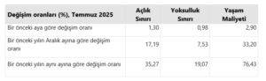 Gıda madde fiyatları üzerinden yapılan hesaplamaya göre dört kişilik bir memur ailesinin sağlıklı beslenmesi için aylık yapması gereken harcama tutarı yani açlık sınırı Temmuz 2025 için 35 bin 712 lira, tek bir (bekâr) çalışanın yaşam maliyeti ise 54 bin 115 lira olarak hesaplandı.