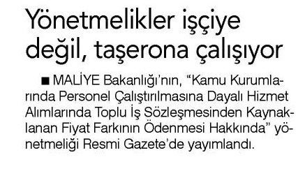 YÖNETMELİKLER İŞÇİYE DEĞİL, TAŞERONA ÇALIŞIYOR