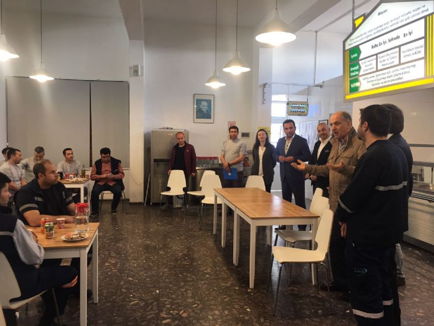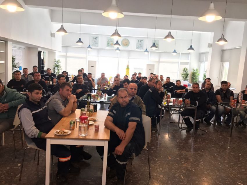 Yemekhanede işçilere seslenen Genel SEKRETERİmiz Mustafa Akyürek, sorunsuz bir sözleşme süreci geçirdiklerini dile getirerek, bu süreçte sendikasına güvenen üyelere ve işçilerin memnuniyetiyle karşılanan sözleşmeye katkı sağlayan işverene de teşekkür etti.