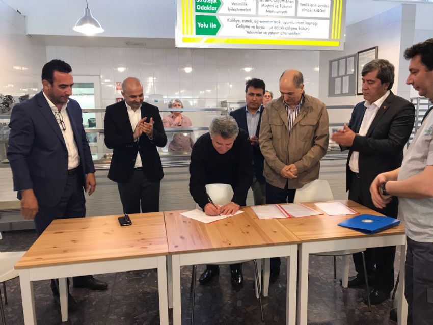 Sendikamız ile YUDUM Gıda arasında yürütülen Toplu İş Sözleşmesi (TİS) görüşmelerinde geçen hafta anlaşmaya varılmıştı. Anlaşmanın ardından YUDUM Gıda’nın Ayvalık’taki fabrikasını ziyaret eden Genel Başkanımız Mustafa Türkel ve Genel SEKRETERİmiz Mustafa Akyürek, hem işçilerle bir araya geldi, hem de sözleşme protokolünü imzaladı.