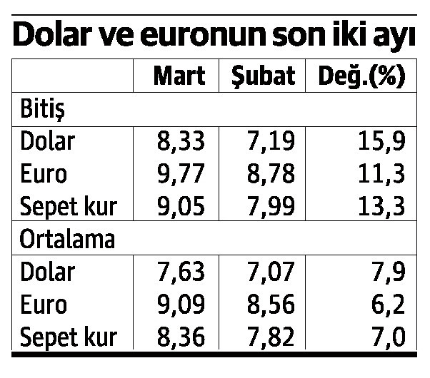 Merkez Bankası mart ayındaki hızlı fiyat artışında kurun etkisinden adeta kerhen söz ediyorsa da oranlar ortada.
