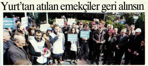 "Yurt gazetesinde çalışanlar sendikalı olmuştur. Bu, ‘Artık bu işyeri senin iki dudağın arasında değil, ben de varım’ demektir. Çalışma Bakanlığı, TGS’yi yetkili sendika ilan etmiştir. Ancak gazetenin sahibi olan CHP milletvekili Durdu Özbolat toplusözleşme masasından kaçmaktadır. Buradan kendisine bir kez daha sesleniyoruz: Yurt gazetesini Yurt gazetesi yapan çalışanlarla masaya oturmak mecburiyetindesiniz.