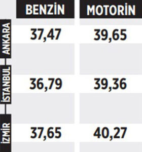Gelir İdaresi Başkanlığı yaptığı duyuruya göre; kurşunsuz 95 oktan benzinin ÖTV tutarı 7,52 TL’den 9,45 TL’ye, motorinde 7,05 olan ÖTV tutarı 8,86 TL’ye, LPG’de 5,77 olan tutar 7,25 TL’ye, doğalgazdaki tutar ise 0,0747 TL’den 0,0938 TL’ye yükseldi. Yeni ÖTV tutarlarının yansıtılmasıyla önceki gece benzine 2.31 TL, motorinde 2.17 TL, LPG’de ise 1 TL’lik fiyat artışı geldi. İstanbul’da benzinli 50 litrelik hacme sahip bir otomobilin deposu 1 bin 839 TL’ye, Ankara’da 1 bin 873 TL’ye, İzmir’de 1 bin 882 TL’ye dolabilecek. İstanbul’da motorin kullanılan bir otomobilin deposunu doldurmak için ise 1 bin 968 TL, Ankara’da 1 bin 982 TL’ye, İzmir’de ise 2 bin 13 TL’ye doldurulabilecek. ÖTV zammı mutfak tüpü fiyatlarına da yansıdı. Ankara’da, 12 kilogramlık tüpe 20-25 TL aralığında zam geldi. 12 kilogramlık mutfak tüpünün fiyatı 580 TL’ye yükseldi. 2 kilogramlık tüp ise 5-6 TL aralığında zamlanarak 135 TL’ye çıktı.
