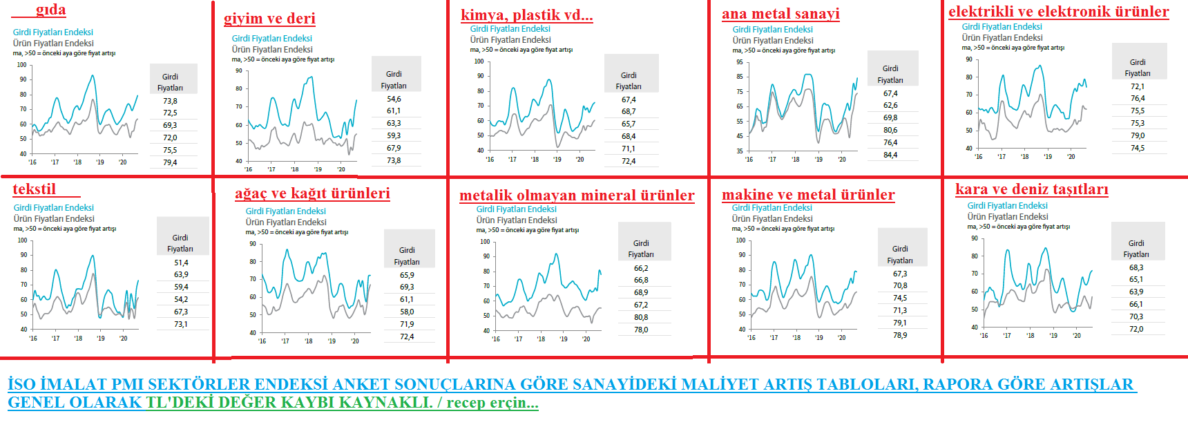 İstanbul Sanayi Odası Türkiye Sektörel PMI eylül verilerine göre de, 10 sektörün sekizi, üçüncü çeyreğin sonunda istihdam artışı kaydetti. Ağaç ve kağıt ürünleri sektöründe çalışan sayısı genel olarak yatay seyrederken istihdam azaltan tek sektör gıda ürünleri oldu. Operasyonel kapasitedeki artış, firmaların birikmiş işler üzerinde çalışmasına olanak sağladı. Büyük ölçüde Türk lirasındaki zayıflığın yansıması olarak, girdi maliyetleri tüm sektörlerde sert şekilde artmaya devam etti ve sektörlerin çoğunda enflasyon ağustos ayına göre hızlandı. Nihai ürün fiyatları enflasyonu da sektörlerin çoğunluğunda hızlandı.