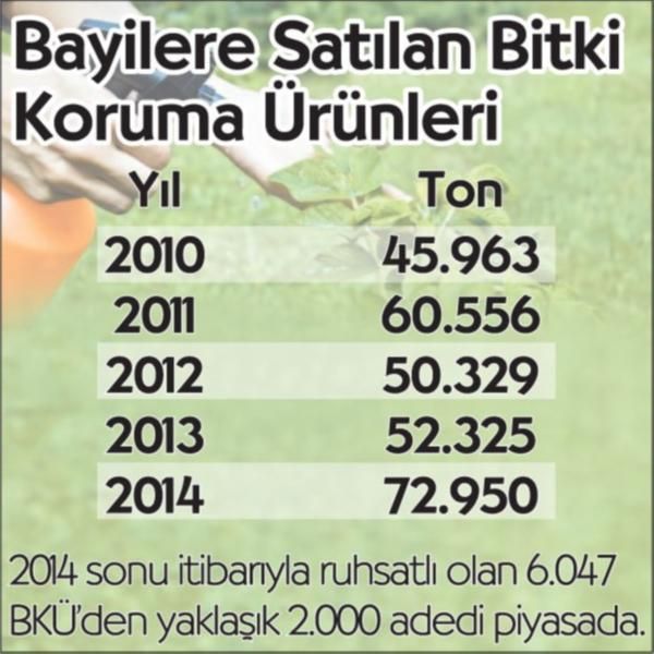 Dünya pestisit tüketimi yıllık 3.5 milyon ton iken satış tutarı da 50 milyar dolar. Türkiye’de ise tüketilen pestisitlerin yıllık satış tutarı 2014 sonu itibarıyla 600 milyon Avro. Tarım ilaçları kullanımına bakıldığında insektisitlerin; Türkiye’de yüzde 42, dünyada yüzde 30, herbisitlerin; Türkiye’de yüzde 29, dünyada yüzde 45 ve fungisitlerin de Türkiye’de yüzde 18, dünyada yüzde 20 oranlarında kullanıldığı görülüyor. Akdeniz Bölgesi’nde yüzde 36, Marmara Bölgesi’nde yüzde 15, Ege Bölgesi’nde yüzde 18 pestisit kullanılıyor.