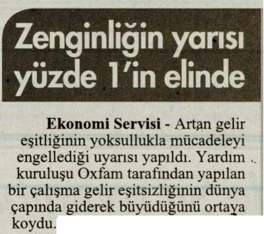 Artan gelir eşitliğinin yoksullukla mücadeleyi engellediği uyarısı yapıldı. Yardım kuruluşu Oxfam tarafından yapılan bir çalışma gelir eşitsizliğinin dünya çapında giderek büyüdüğünü ortaya koydu.
